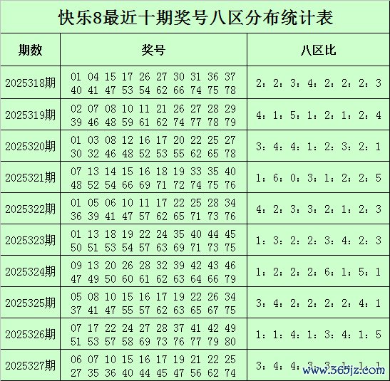 福彩欢畅8第2025327期开奖记忆:06 07 10 15 16 17 19 21 22 25 27 35 36 40 44 45 47 56 62 74,其中奖号八区比为3:4:4:3:3:1:1:1。